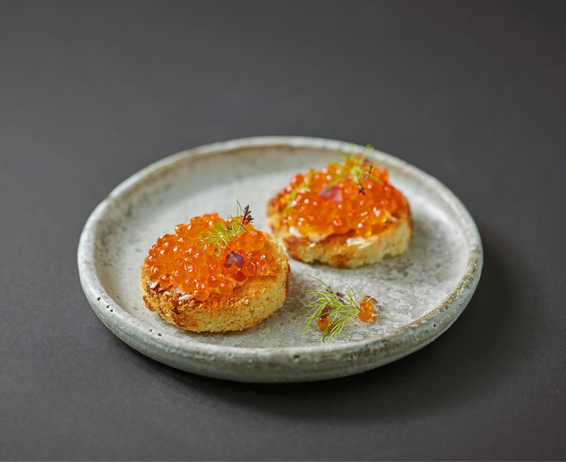 Несладкая выпечка со сливочным маслом лучше всех раскрывает вкус лососевой икры. Для праздничного стола профитроли можно испечь дома — это довольно простой и быстрый рецепт. Остывшие профитроли нужно надрезать так, чтобы в полую внутреннюю часть легко заходила чайная ложка. И наполнить их сливочным маслом (сливочным сыром) и деликатесом.