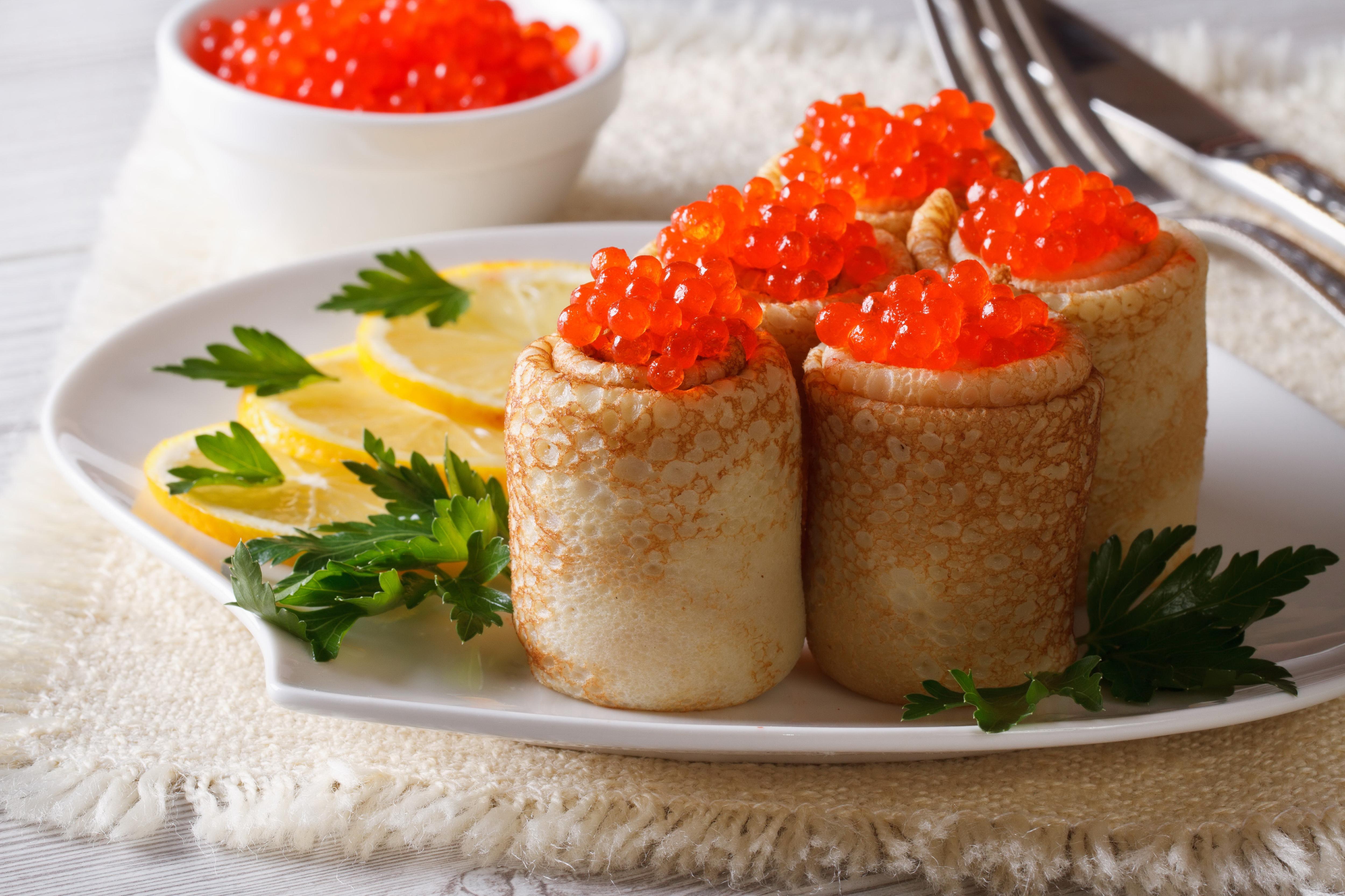Роллы из блинчиков с икрой