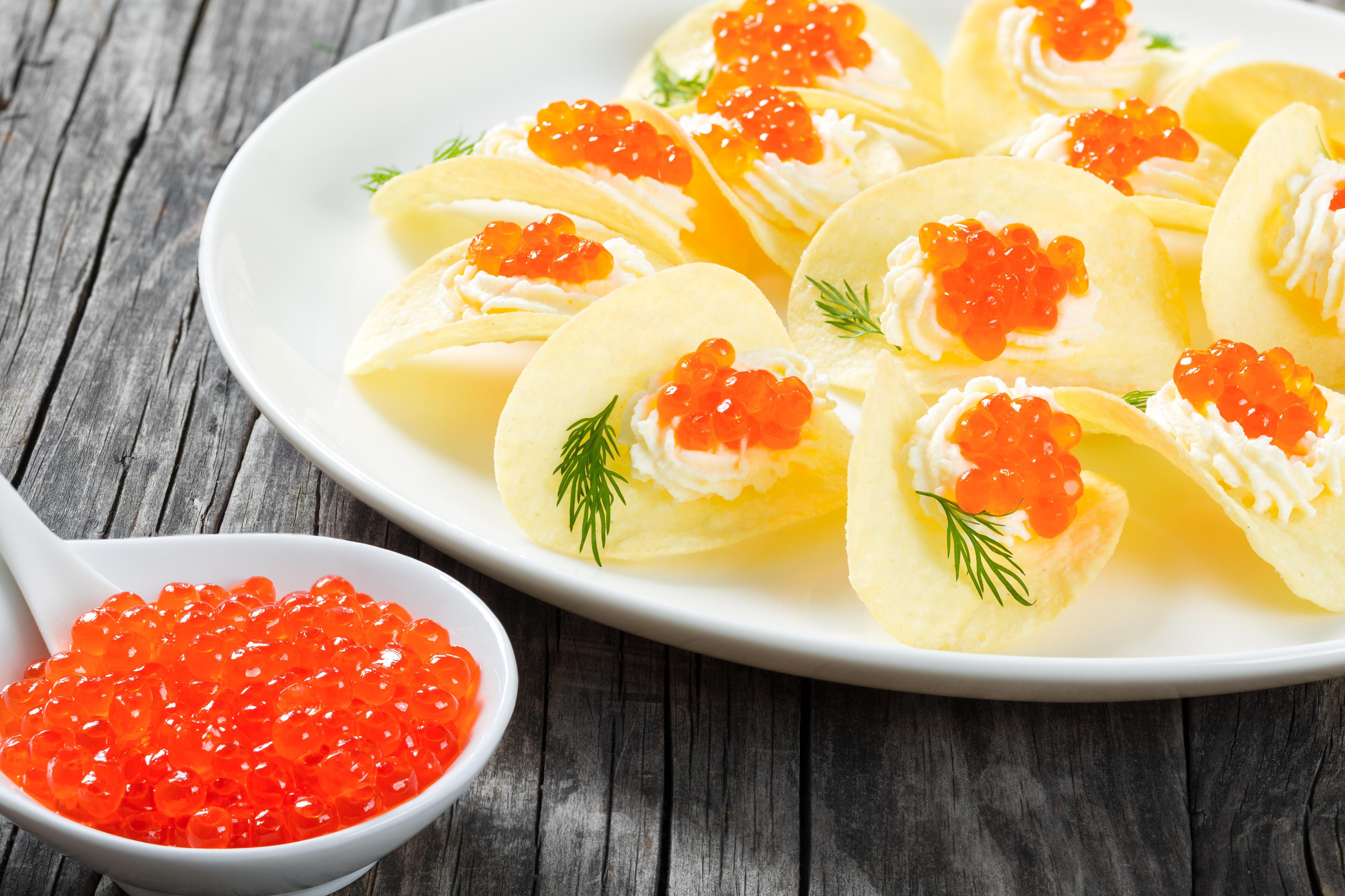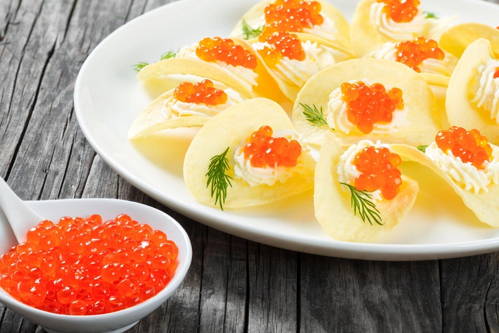 Икра на чипсах