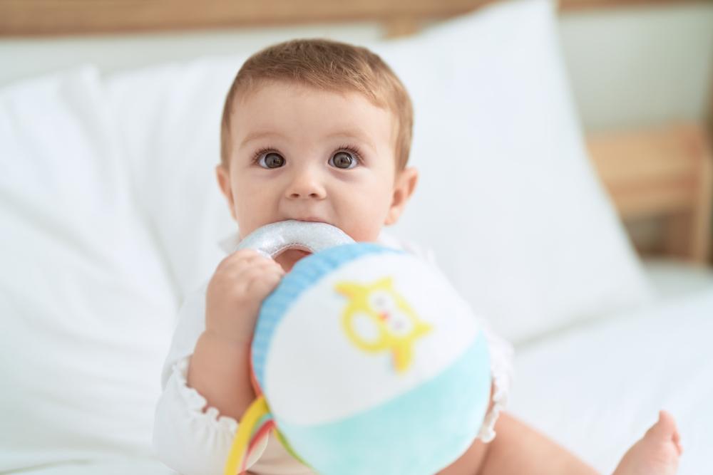 Хватает и тянет в рот предметы.