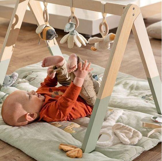 Турничок с подвесными игрушками. Эти игрушки могут крутиться, раскачиваться, передвигаться, так что ребенку будет на что посмотреть.