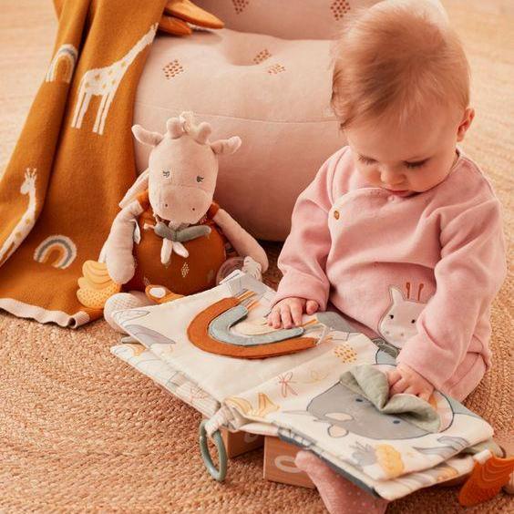 С 6–7 месяцев, когда малыш уже может сидеть и начинает исследовать свойства предметов, у него активно развивается моторика рук, полезно предложить ему развивающий коврик или бизиборд. В это время полезно взаимодействовать с игрушками, сделанными из разнородных материалов, учить малыша открывать и закрывать окошки, вытаскивать и вставлять вкладыши, нажимать кнопки, шуршать, греметь и пищать.