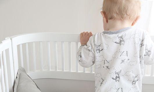 4. Чтобы маленький учился вставать сам, покажите ему игрушки, закрепленные на бортике кроватки. Через 2–3 недели «тренировок» он сможет крепко стоять на ножках, а позже — и двигаться вдоль перил.