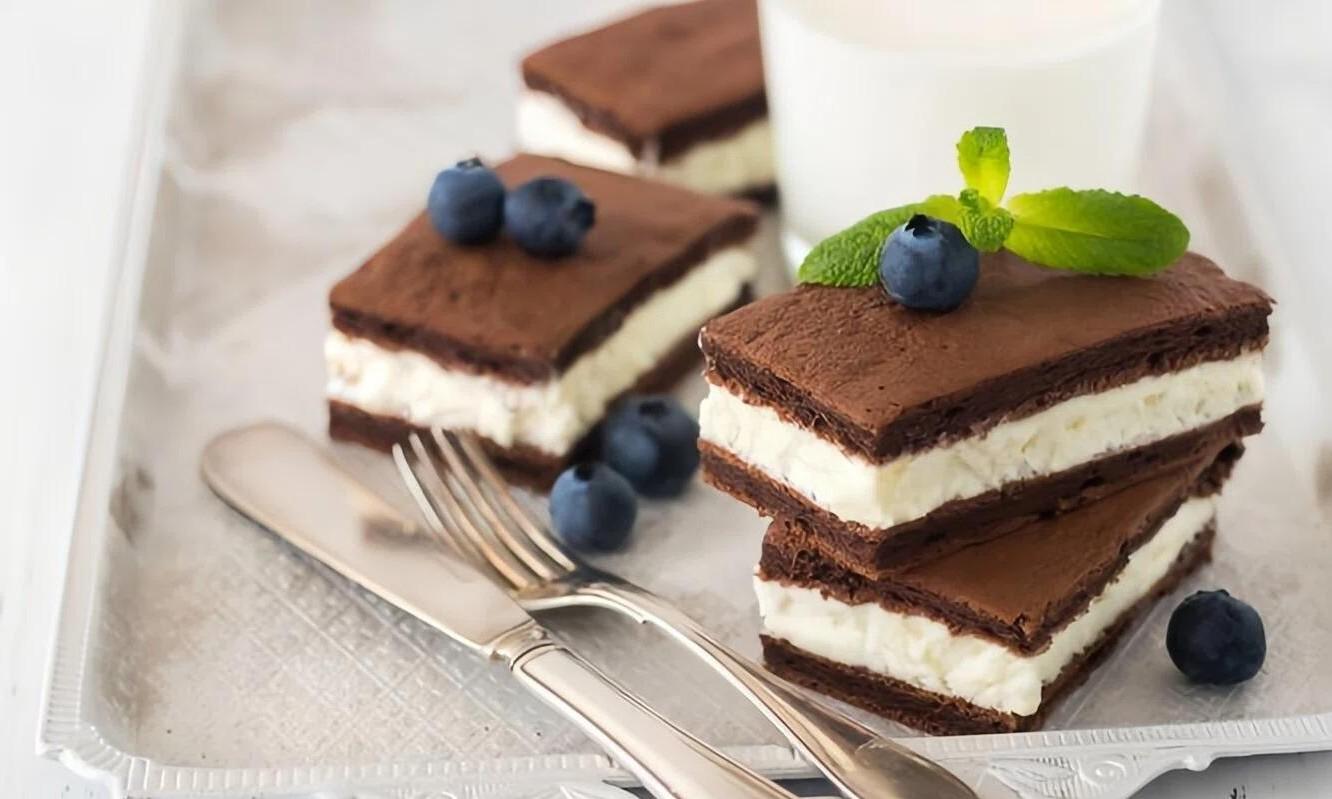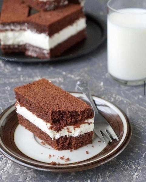 Принцип пирожного очень прост: между двумя шоколадными кусочками бисквита кладут прослойку нежнейшего молочного суфле. Этот десерт будет хорошо сочетаться как с чаем и какао, так и с кофе, а главное — у него более мягкий и натуральный вкус, без избытка подсластителей. Готовится он легко, достаточно запастись миксером и научиться взбивать тесто для бисквита.