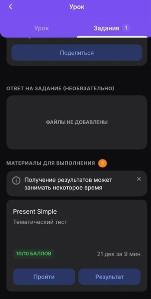 Пролистайте вниз. Если есть электронное задание, вы это увидите. Нажмите на задание — оно перенаправит вас к карточке с тестом.