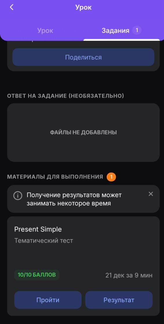 После этого у вас появится информация о том, сколько ответов верные, и где вы совершили ошибку. Но правильные ответы вам не дадут. При желании вы можете перепройти тест.