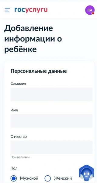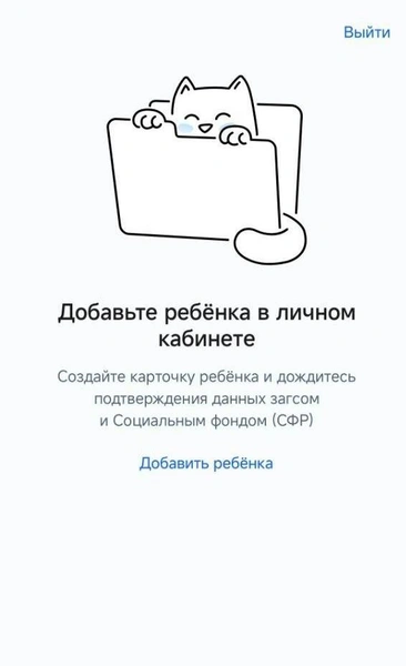 Затем нажмите на кнопку «Добавить ребенка» и введите ФИО, данные свидетельства о рождении. Дождитесь подтверждения данных.
