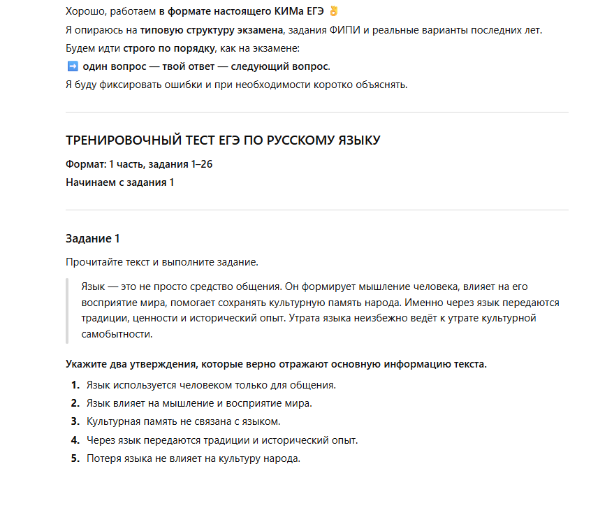 Подготовка идет полным ходом, промежуточные задания выполняются успешно, а как насчет всего экзамена? ChatGPT справится и с этим: главное правильно прописать промт и можно «сдаваться».