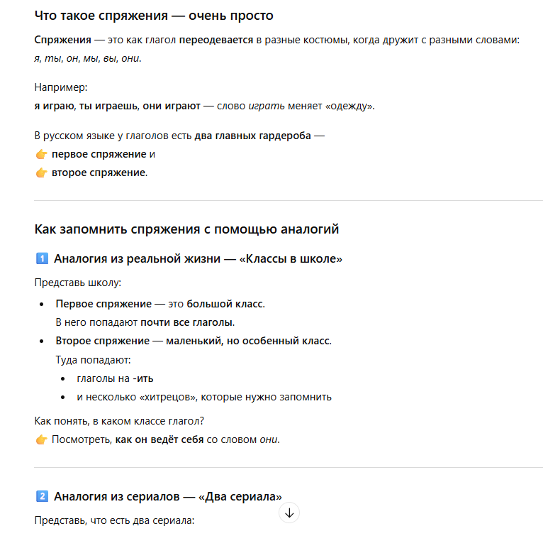 Однако его можно использовать для создания плана работы, а также выбора направления. ИИ отлично структурирует материал — это именно тот навык, которого так не хватает детям.