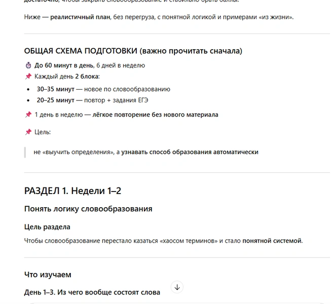 Детям трудно самоорганизовываться, даже если речь идет о подростках. Нейросеть в этом случае прекрасный помощник — ИИ может составить реалистичный план подготовки, учитывая уже имеющиеся у ребенка знания и умения.