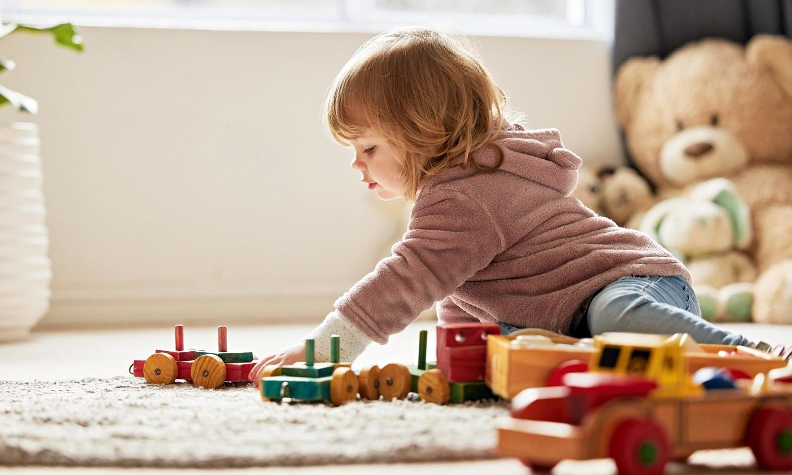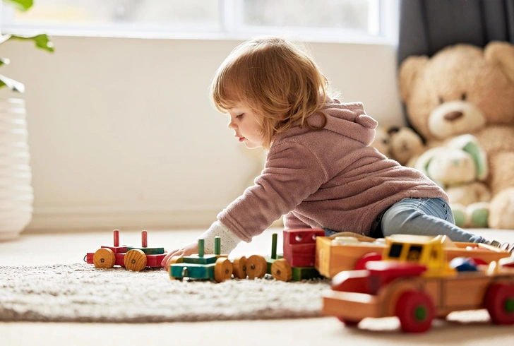 Оборудуйте в комнате открытый стеллаж или корзину с 3–4 визуально привлекательными игрушками. Меняйте их раз в неделю, создавая эффект новизны.
