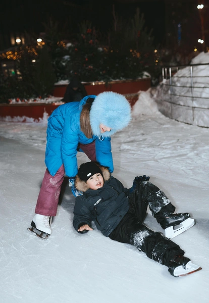 Не обязательно идти на профессиональный спортивный каток — достаточно городского катка с безопасной зоной для детей. Несложные упражнения на коньках или просто совместное катание помогут детям развить координацию и уверенность, а взрослым — вспомнить радость первых шагов на льду.