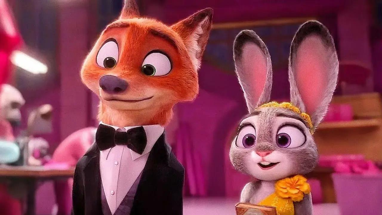 Весь сиквел зрители гадают, какие отношения между крольчихой и лисом — они только напарники, друзья, или между ними есть чувства? На первом задании они играют роль супружеской пары с коляской.