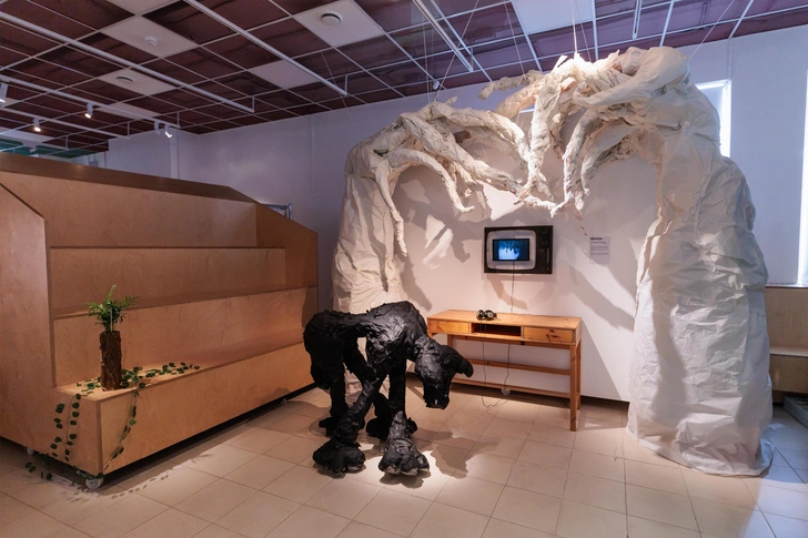 Перформанс «Косы» Лизы Шавандиной, например, повествует о телесной памяти и семейных ритуалах. А инсталляция «это было в гастрономе» Рената Кима через образ продавщицы за прилавком ввергает в воды ностальгии, где кругами от точки касания расходится ощущение потерянного времени. Благодаря таким ярким работам и родители, и дети знакомятся одновременно и с трендами современного искусства, и с подлинным мировоззрением авторов.