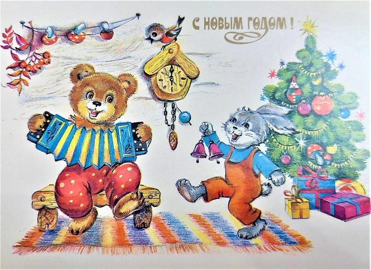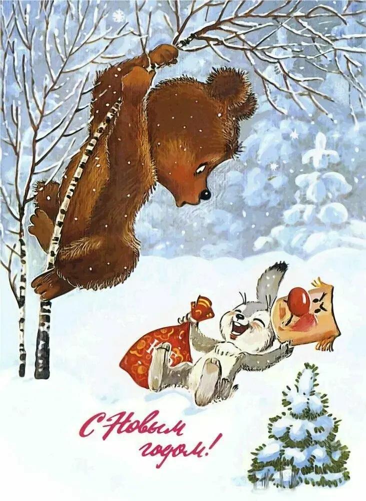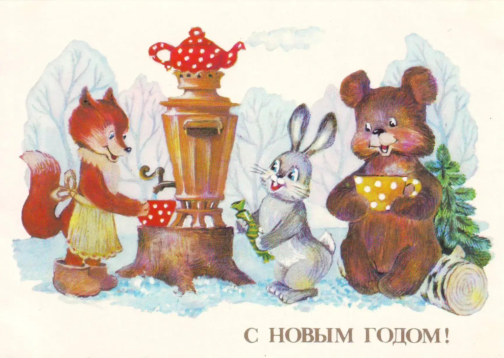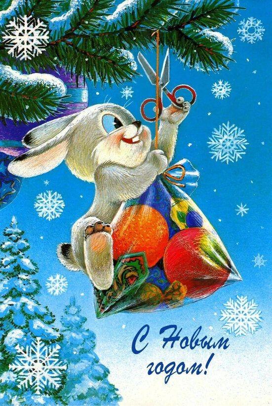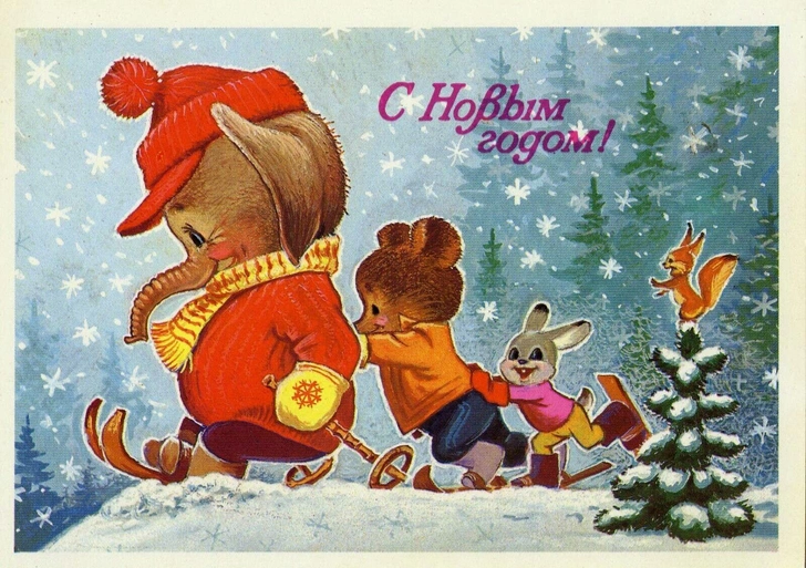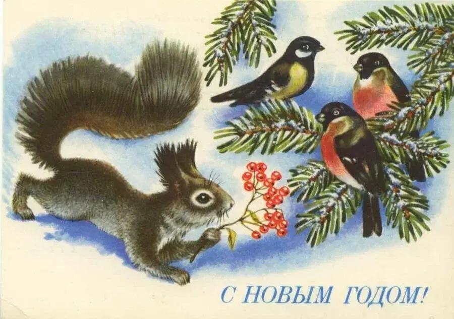 Советские новогодние открытки с животными