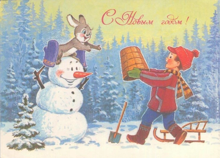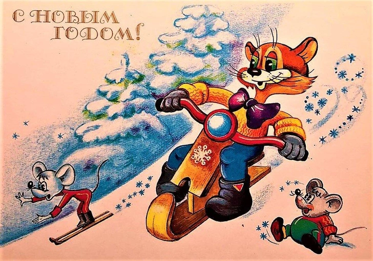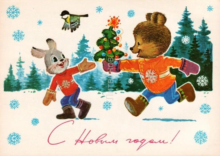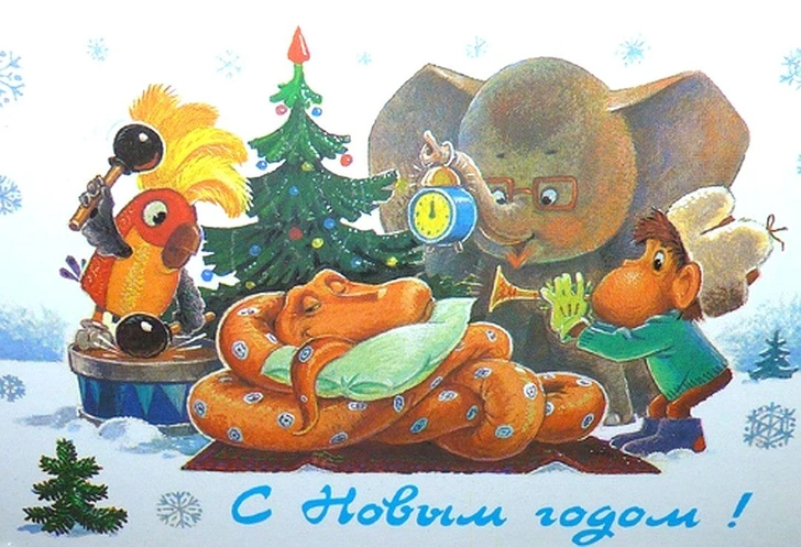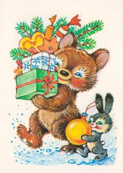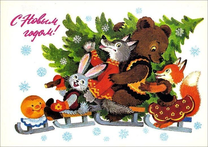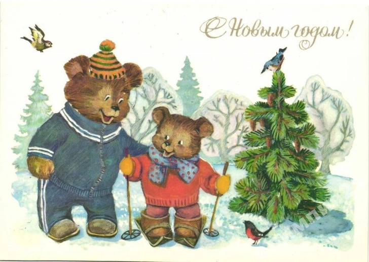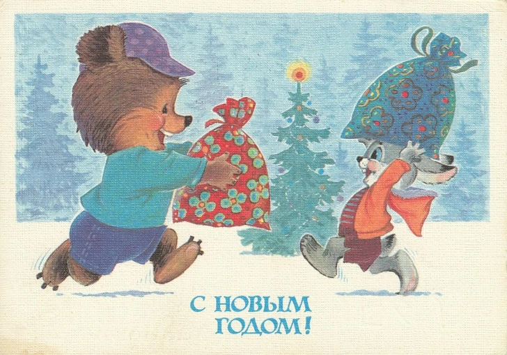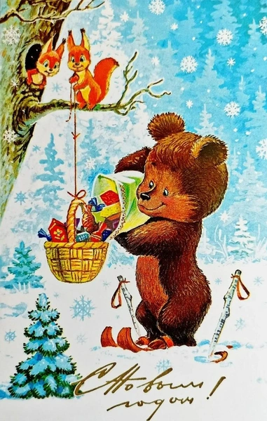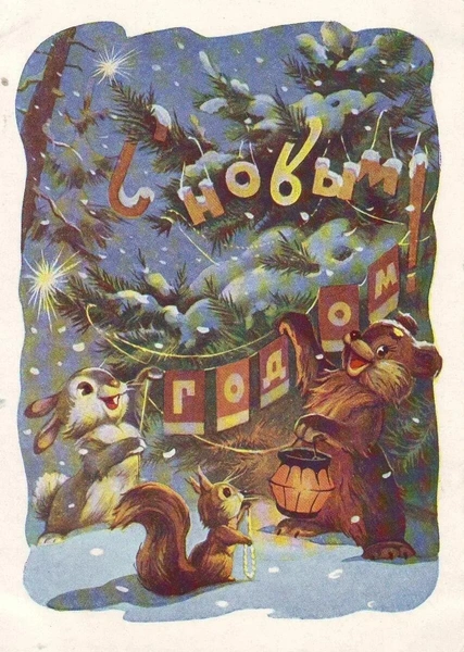Советские новогодние открытки с животными