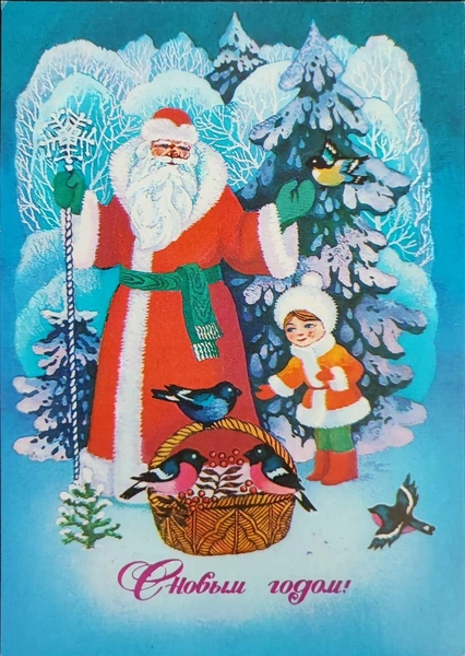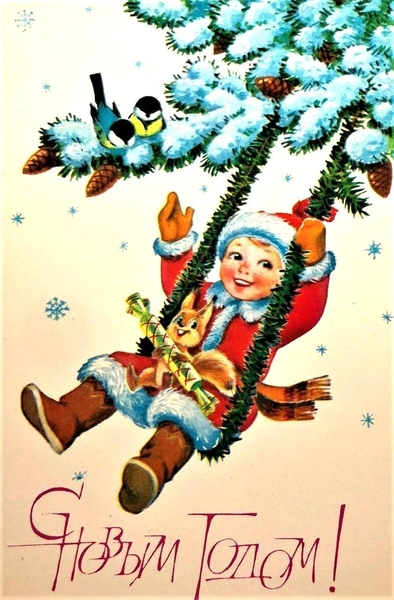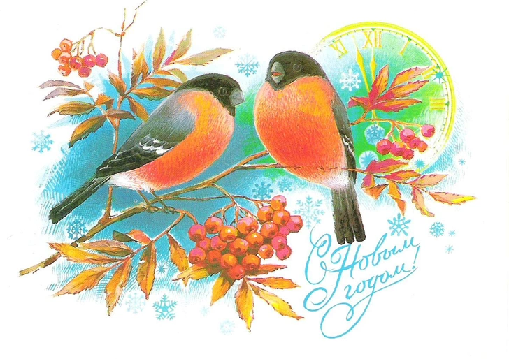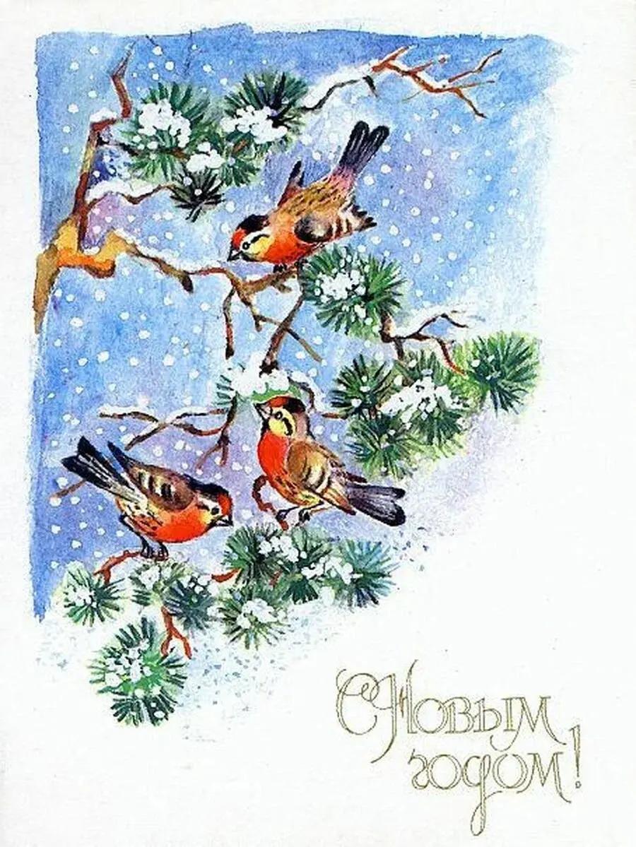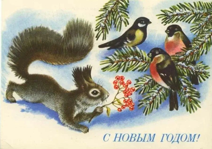Сюжетов со временем стало больше: на открытках начали печатать советских детей — октябрят и пионеров, животных, любимых героев мультфильмов, новогодние украшения и один из главных символов зимы — красногрудых снегирей.