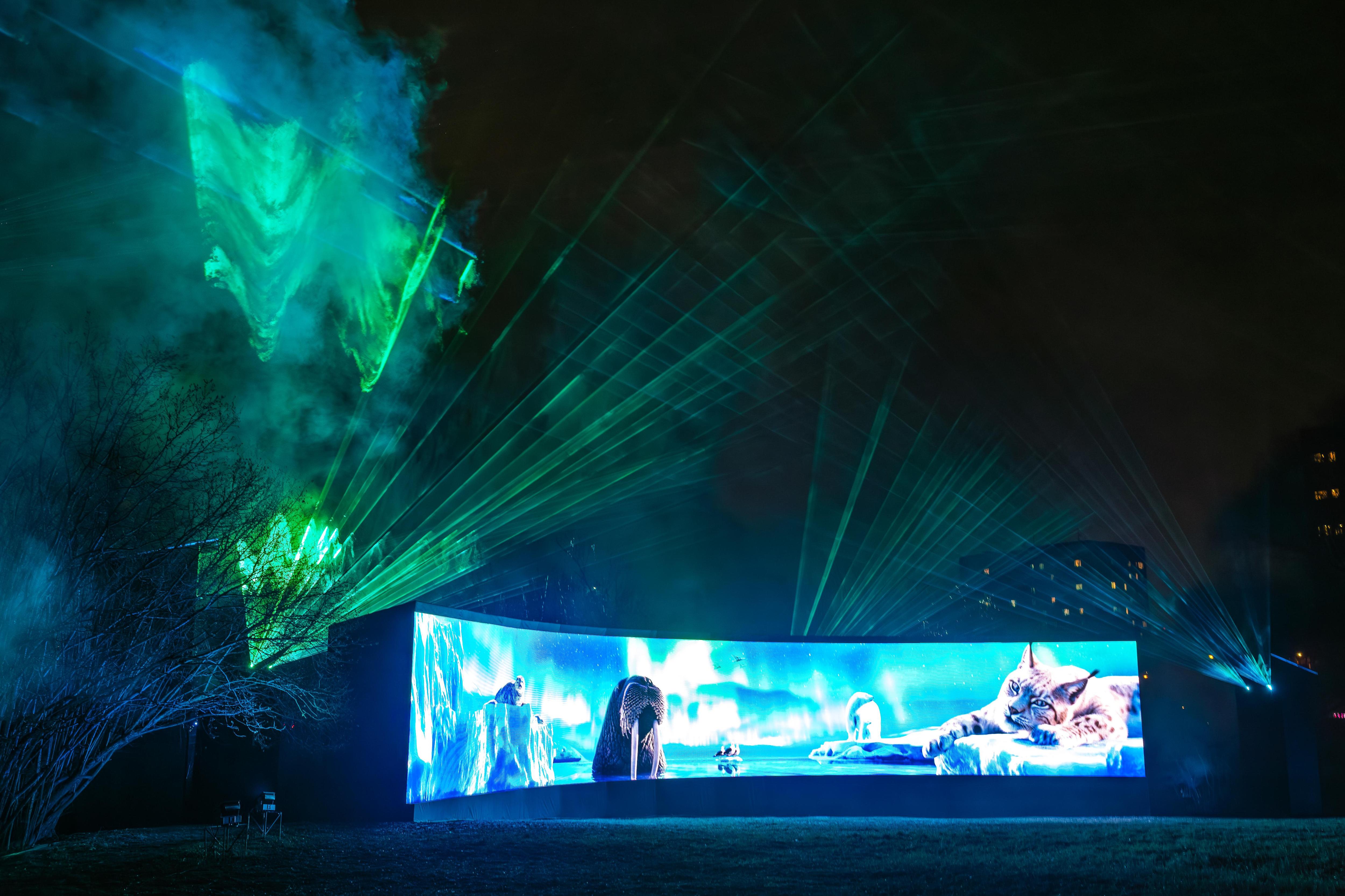 В парковой зоне гости могут увидеть северное сияние и встретить уникальных животных со всей России, в том числе краснокнижных, которые будто появляются среди деревьев и кустов. Благодаря использованным технологиям природная среда органично входит в художественный замысел: световое шоу становится частью ландшафта и делает природу главным участником действа.