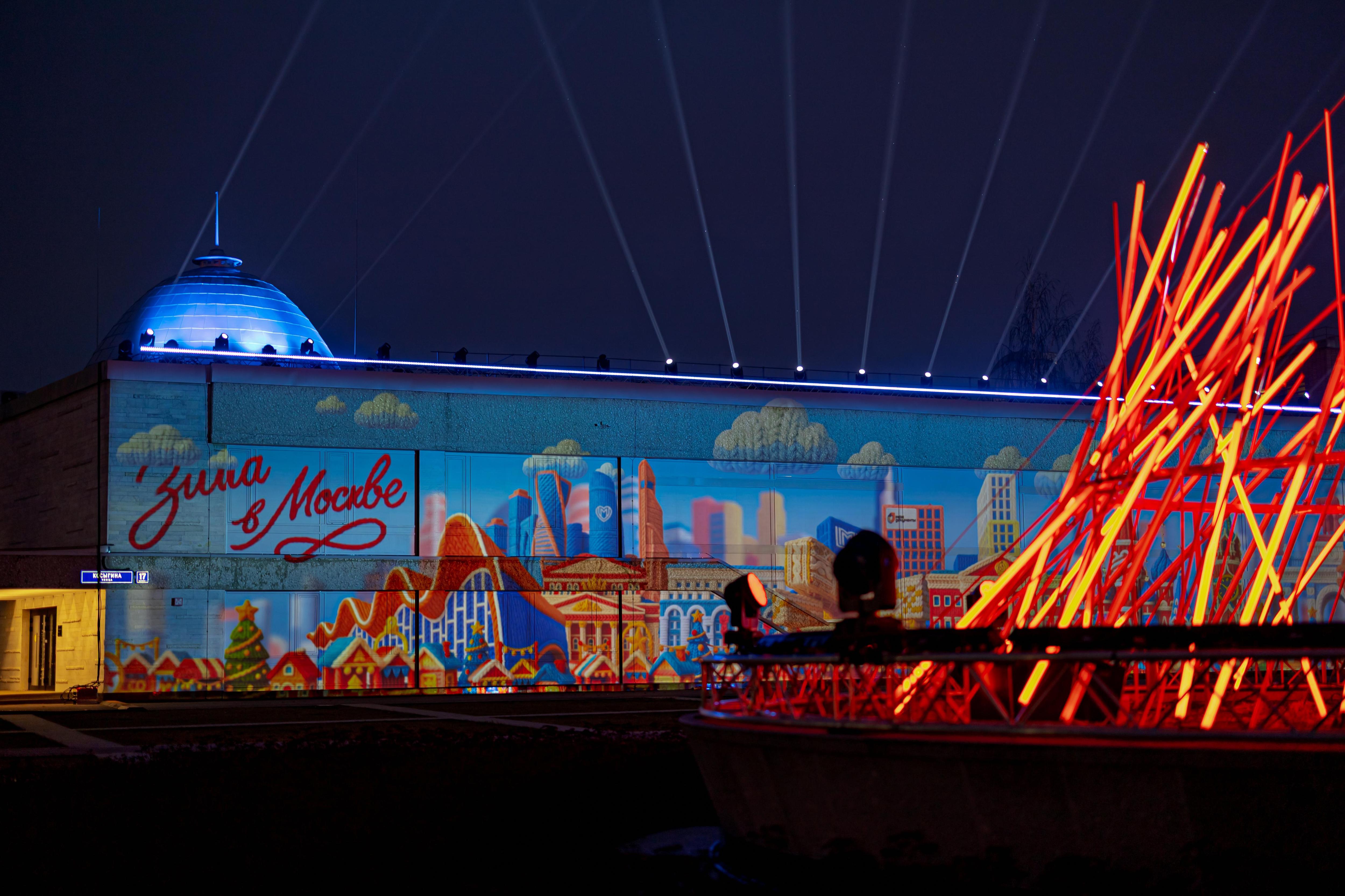 Для гостей площадки «Зимы в Москве» на Воробьевых горах подготовили красочное светомузыкальное шоу. Его можно увидеть каждый вечер на протяжении всей зимы.