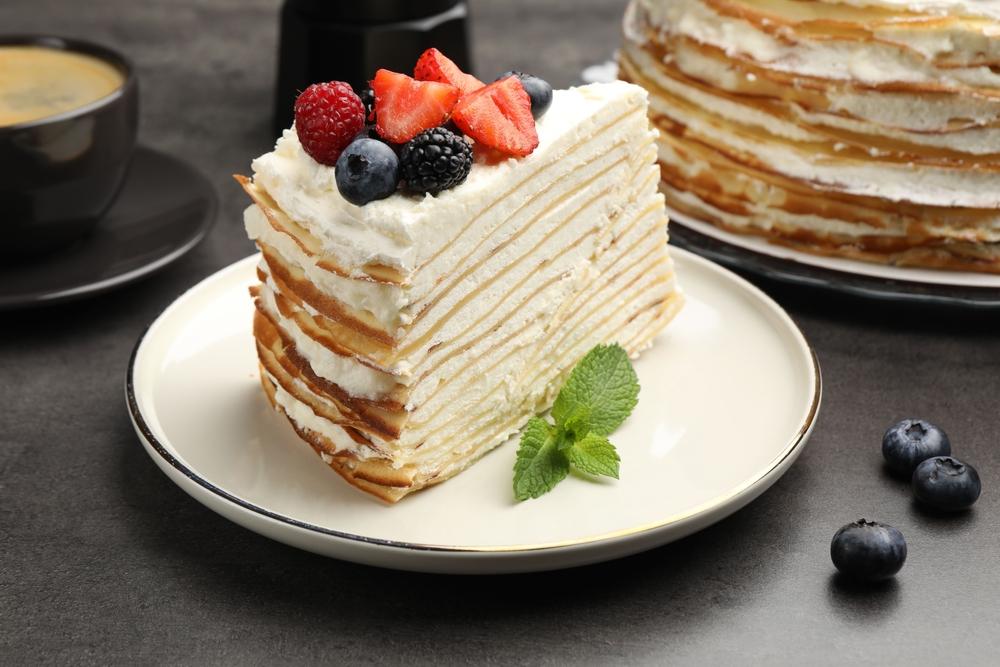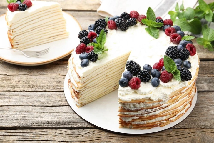 Масленичная неделя — время экспериментов. Если вы еще не устали от блинов, но хотите подать их немного иначе, блинный торт с кремом «Шантильи» — идеальный вариант.
