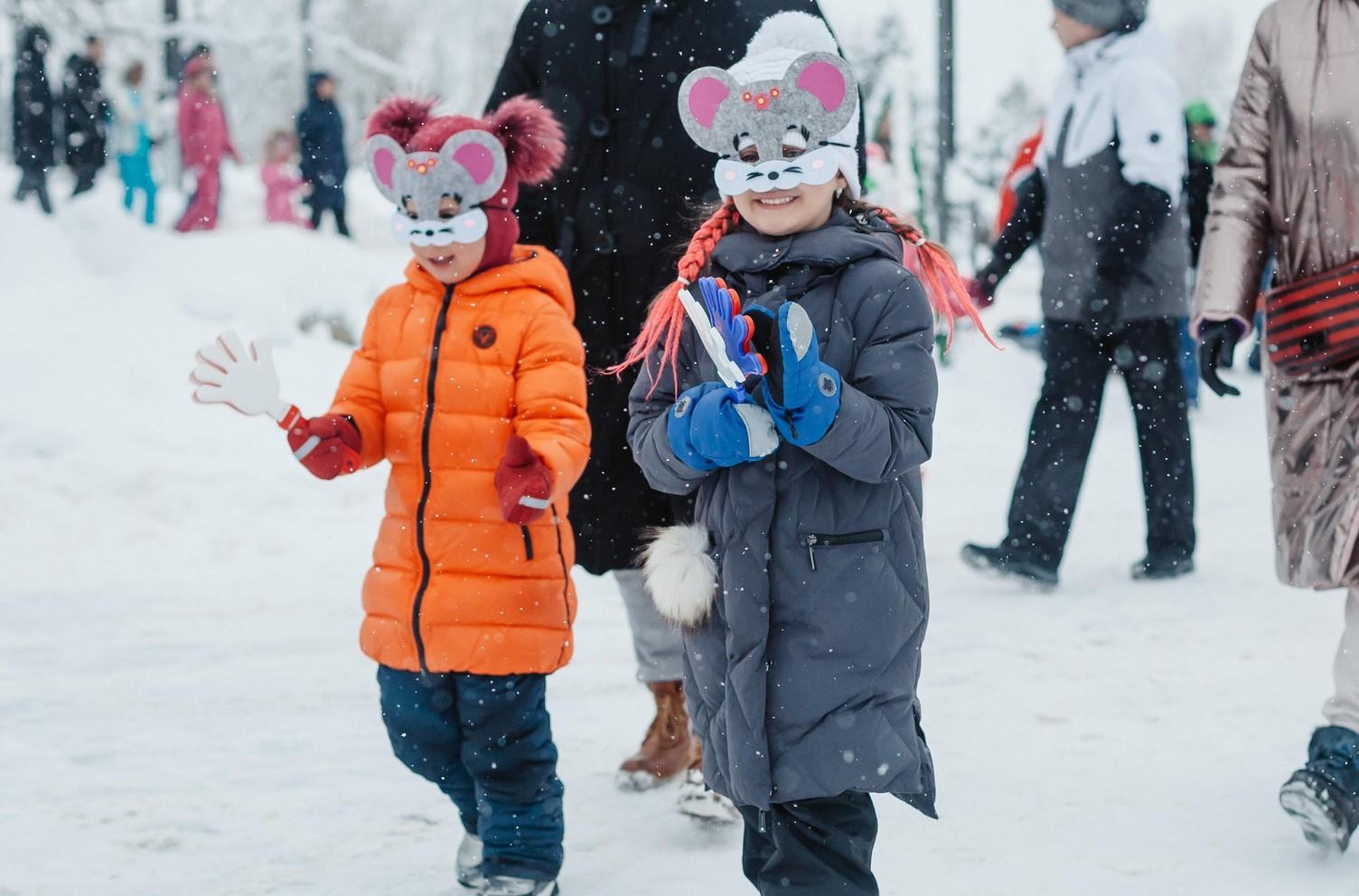 Зимние развлечения на улице.