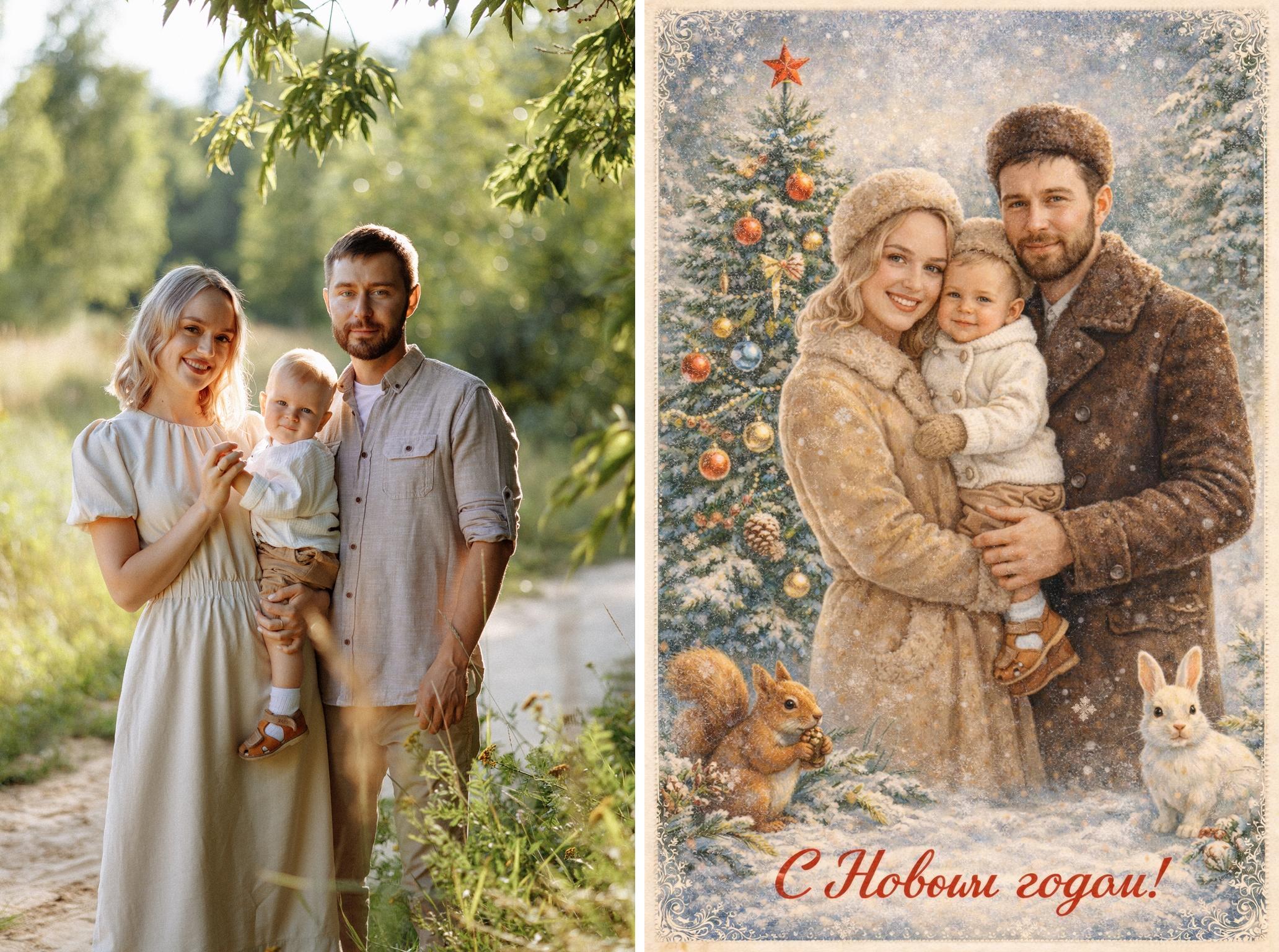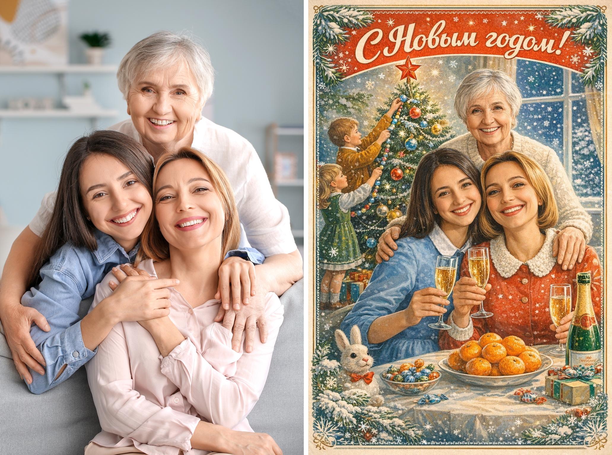 Социальные сети захлестнул предновогодний ностальгический тренд: пользователи массово превращают свои обычные фотографии в те самые теплые, душевные советские открытки из детства. И самое прекрасное, что для создания такого маленького шедевра не нужны фотошоп или талант художника. Достаточно вашего фото и пары минут в диалоге с искусственным интеллектом.