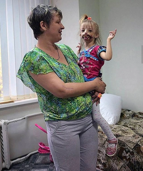 Ухаживать за Дариной было очень тяжело. Из-за особенностей строения челюсти есть девочка не могла, грудь и бутылочку не брала. Кормить приходилось из шприца, выливая жидкость в рот. Так девочка и росла на жидкой пище до шести лет, пока ей не сделали операцию по наращиванию губ и челюсти.