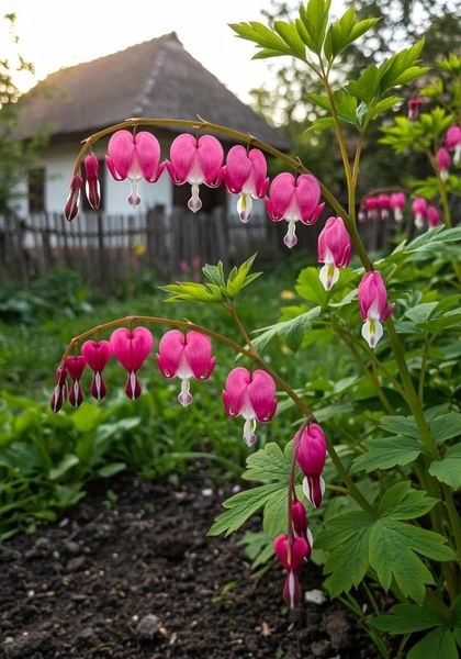 В народе это растение называют «разбитое сердце» из-за необычной формы цветков. Дицентра предпочитает ажурную тень (так как прямые солнечные лучи могут сжечь листья) и хорошо увлажненную почву. При этом практически не требует полива, так как чрезмерно влажная почва для нее губительна.