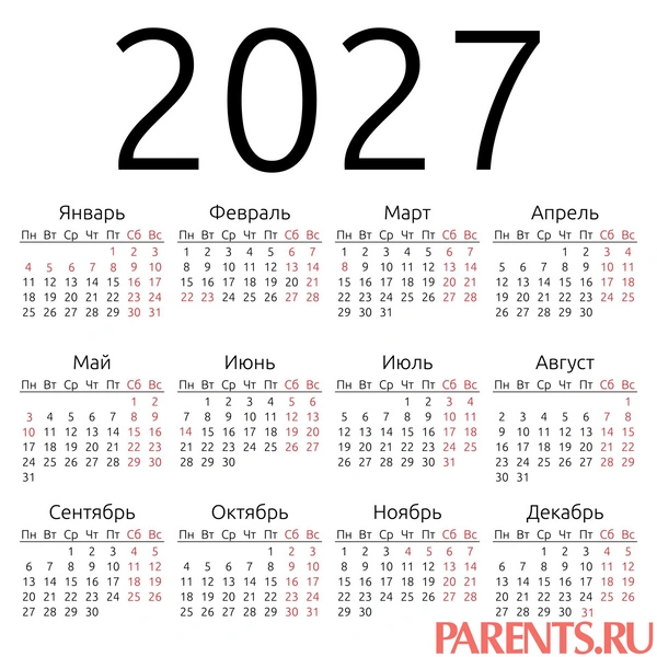 Здесь наглядный календарь выходных и рабочих дней в 2027 году. Можно сохранить его на смартфон.