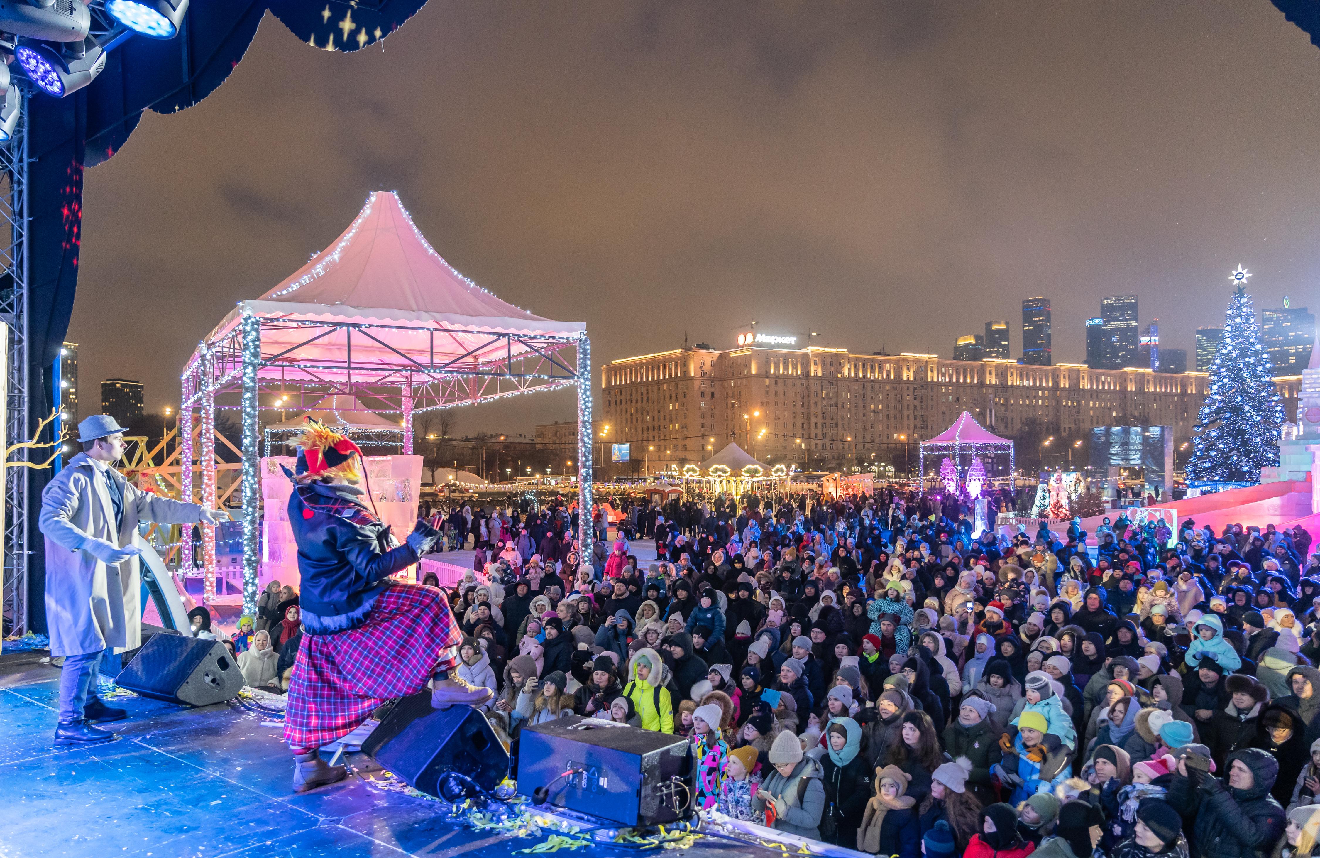 На сцене Ледовой Москвы проходила развлекательная программа, выступили артисты: Авраам Руссо, Гоша Куценко, Тима Акимов, SOINA, группа «Улетевшие», группа «Братсестра». Свое яркое театрализированное шоу представил театр «Не ИИ».
