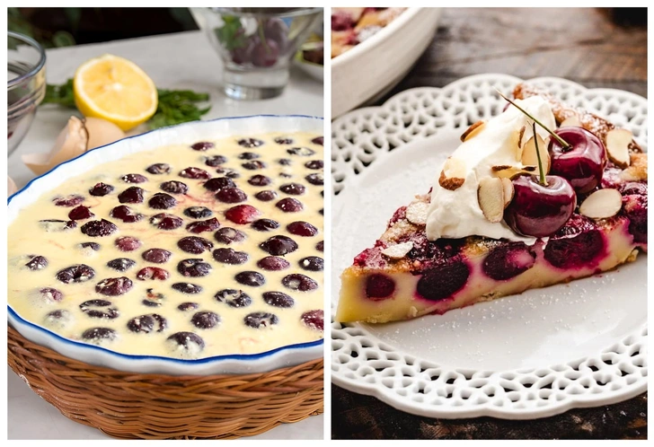 Клафути пришел к нам из французской кухни, но, в отличие от изысканных соусов и сложных кондитерских изделий, этот пирог демократичен. По сути, это запеченная ягода в нежной яично-молочной заливке. Тесто напоминает что-то среднее между блинным и суфле — мягкое, невесомое, идеально сочетающееся с вишней.