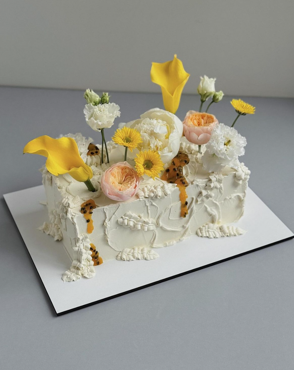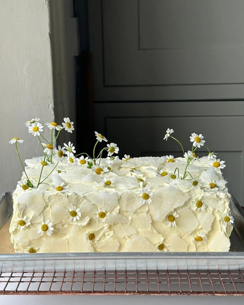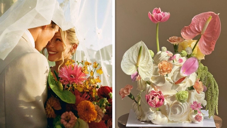 А этот торт подойдет любителям ярких акцентов. Конечно, цветочный декор в десертах используют давно. Однако если заменить привычные розы на полевые цветы, это будет выглядеть очень свежо и необычно. Еще можно добавить сухоцветы или немного фруктов — восторженные отзывы от гостей обеспечены.