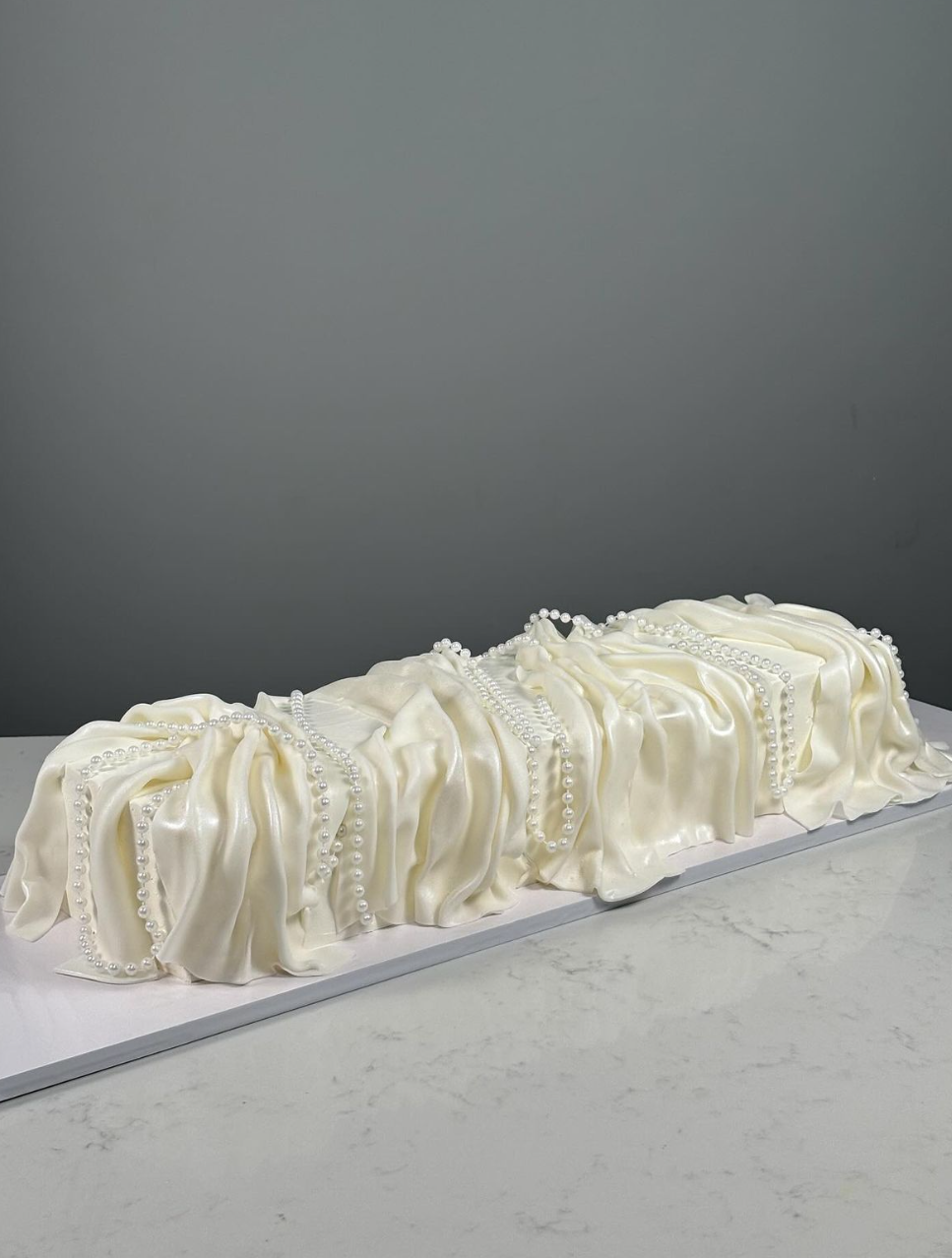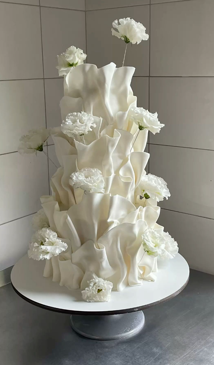 Торты с имитацией ткани, которые в этом свадебном сезоне становятся все популярнее, выглядят не только красиво, но и очень символично. Мастика, шоколад и рисовая бумага создают плавные линии, которые напоминают вуаль или платье невесты. Выглядит просто, но элегантно.