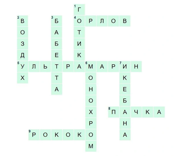 Впишите слова в клетки и узнайте, насколько хорошо вы ориентируетесь в мире прекрасного. Не подглядывайте в ответы (но если очень хочется, то можно).