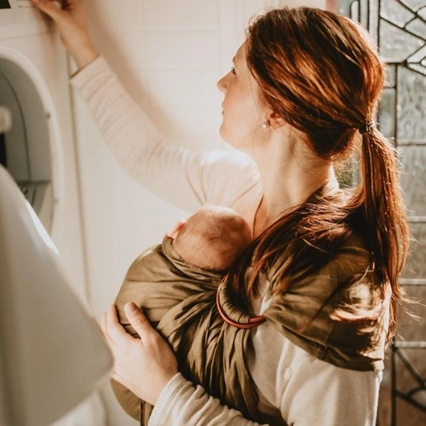 Слинг с кольцами удобен как вариант «на подхват», когда переноска используется нечасто. Его используют для ношения детей с рождения и примерно до года. Этот вид переноски также требует освоения.