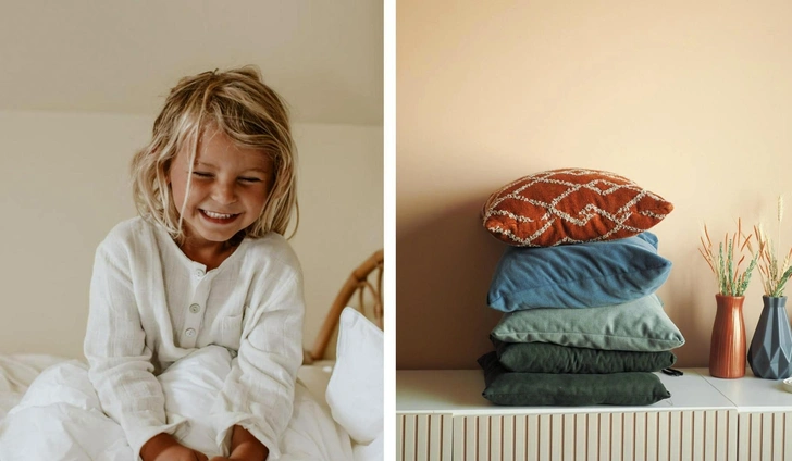 Детям также подходят ортопедические подушки, например с наполнителем лиоцеллом: он впитывает влагу, не собирает пыль, хорошо стирается и не вызывает аллергии. Можно приобрести шерстяную подушку с добавлением синтетического волокна: бонус такой модели в том, что она долго прослужит.