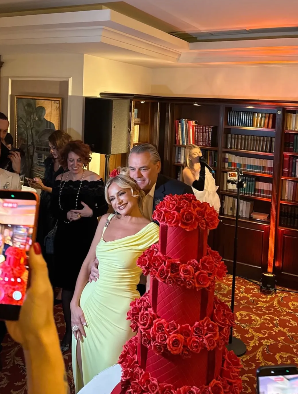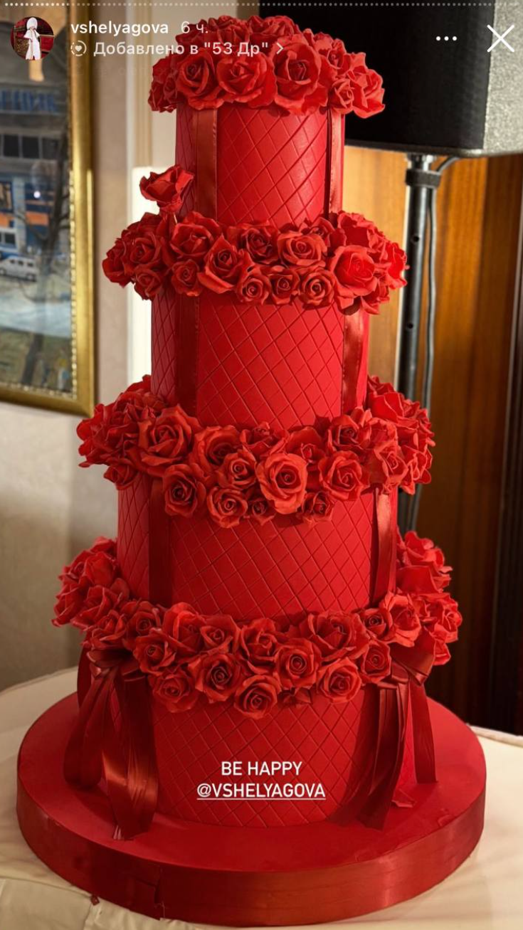 Гости наслаждались роскошным банкетом и выступлениями звезд. В середине вечеринки именинница переоделась в лимонное платье Versace, а затем ей вынесли четырехъярусный торт, украшенный сладкими розами, которые выглядели очень реалистично.