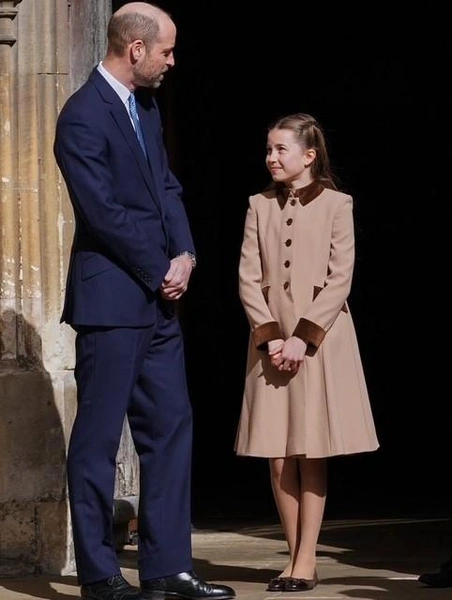 Король Чарльз выглядел очень довольным, тепло приветствуя свою семью, несмотря на холодный ветер, и нежно коснулся плеча своей внучки, принцессы Шарлотты.