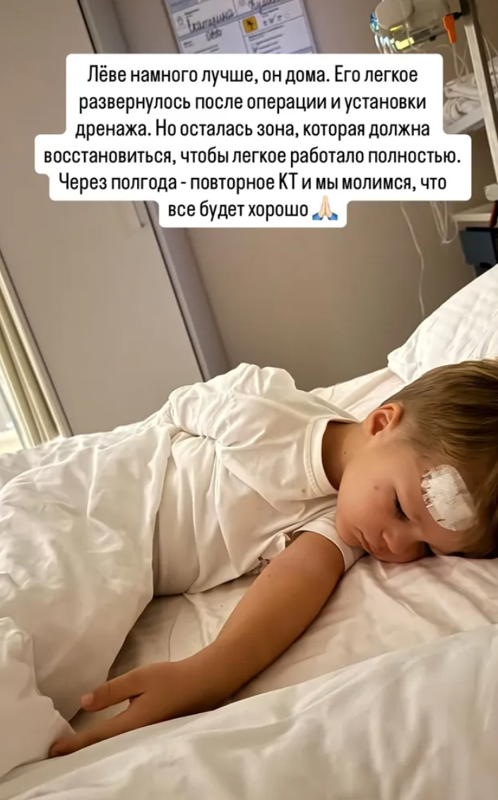 «Леве намного лучше, он дома. Его легкое развернулось после операции и установки дренажа. Но осталась зона, которая должна восстановиться, чтобы легкое полностью работало. Через полгода — повторное КТ, и мы молимся, чтобы все было хорошо», — сообщила Эльвира Викторовна.