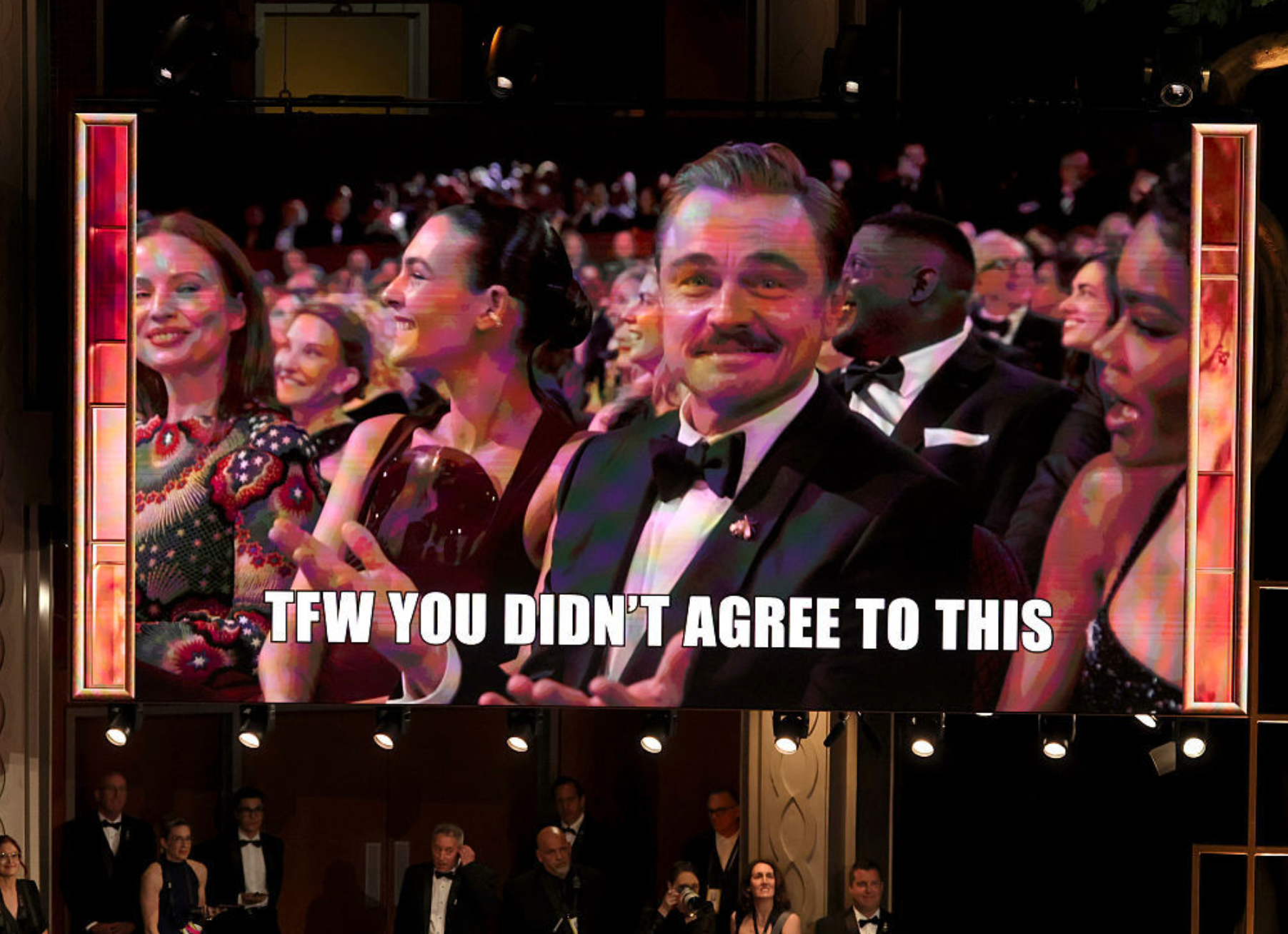 Несмотря на очередное поражение, звезда «Битвы за битвой» заставил все социальные сети говорить о себе. Во время вступительной речи ведущий церемонии назвал Леонардо Ди Каприо королем мемов и предложил актеру прямо на сцене создать новый мем. Актер мгновенно включился в игру и забавно улыбнулся в камеру. В это время на экране появилась надпись: «То чувство, когда ты на это не соглашался».