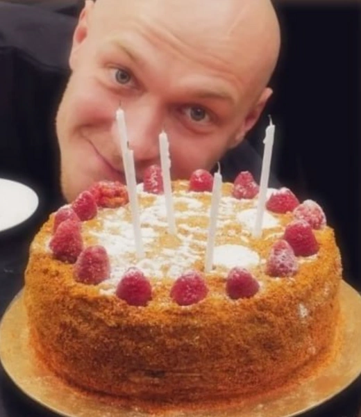 В подборку также вошел кадр с праздничным тортом, очень похожим на домашний медовик. Очевидно, Анна приготовила его для возлюбленного сама, украсив сахарной пудрой, малиной и свечами.