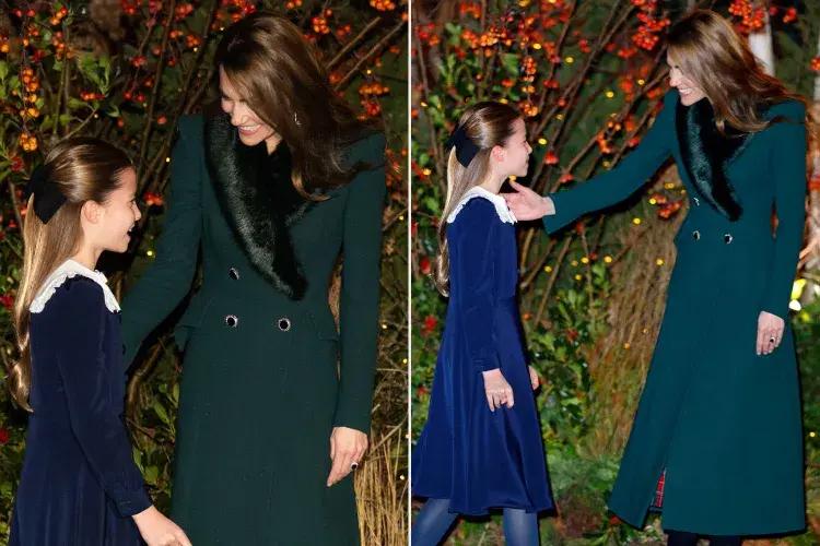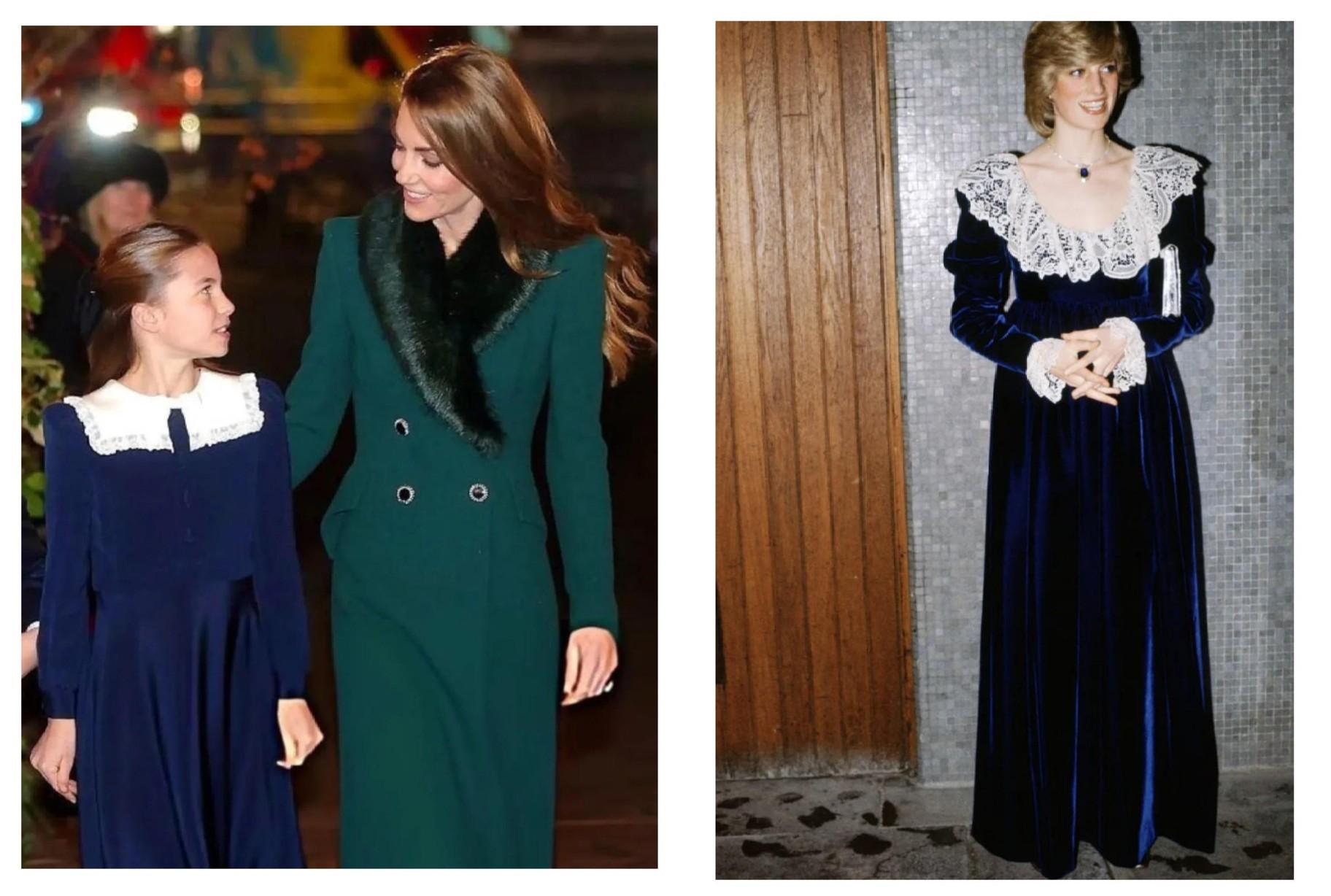 10-летняя принцесса Шарлотта одела на мероприятие очаровательное темно-синее бархатное платье с белым кружевным воротником и черные туфли Мери Джейн. Волосы маленькая принцесса заколола бархатной заколкой-бантом. Модные критики тут же заметили, что платье принцессы — отсылка к одному из образов принцессы Дианы.