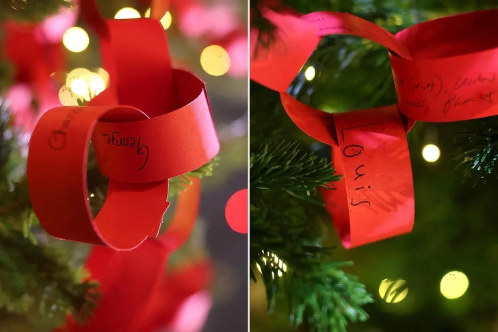 Перед началом службы семья любовалась праздничной иллюминацией и нарядной елкой. Дети Кейт Миддлтон оставили свои послания на Дереве доброты — елке, обертнутой красной бумажной гирляндой, на которой по традиции нужно написать желание. Дети Кейт и Уильяма добавили к гирлянде бумажные звенья, подисанные от руки своими именами.