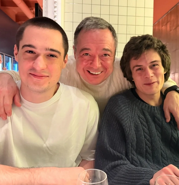 Сергей позировал в белой футболке, а Андрей предпочел свитер. Их отец также тепло оделся. Вместе с сыновьями он смотрел прямо в камеру и улыбался. А вот сама Анна осталась за кадром.