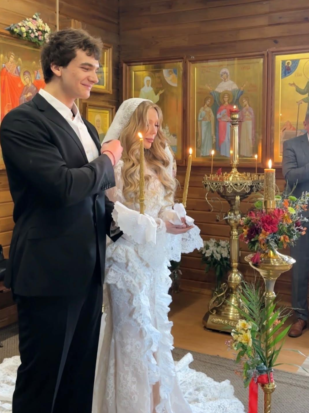 В марте 33-летняя блогерша Карина Кросс и хоккеист Марк Рудаковский, который младше своей избранницы на 12 лет, сообщили о помолвке. А уже спустя полтора месяца влюбленные обвенчались. Таинство прошло на родине жениха — в храме святителя Николая Японского в Минске.