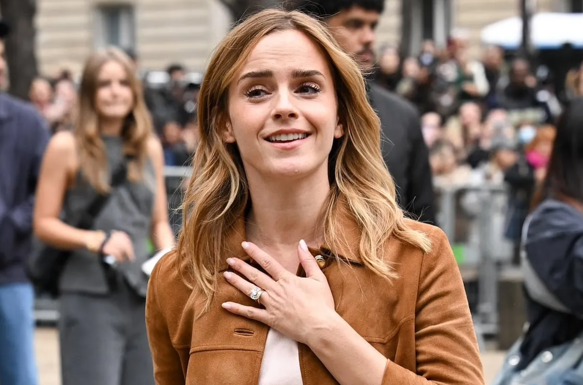 35-летняя звезда «Гарри Поттера» Эмма Уотсон спровоцировала слухи о тайной помолвке на Неделе моды в Париже. Накануне исполнительница роли Гермионы посетила вечеринку Miu Miu и на ее безымянном пальце заметили кольцо.