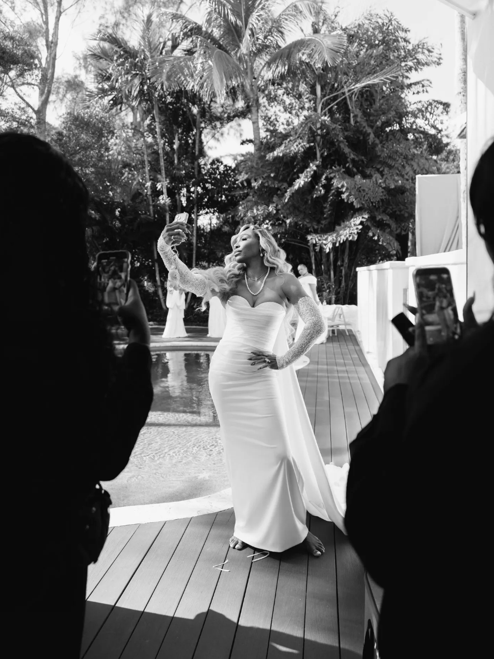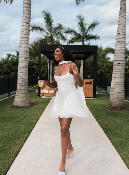По данным зарубежных СМИ, торжество длилось пять дней. Влюбленные устраивали роскошные ужины в Палм-Бич штата Флорида. За это время невеста успела сменить как минимум десять платьев! Винус выглядела неотразимо в лаконичных мини, облегающих образах со шлейфами и платьях в бальном стиле.