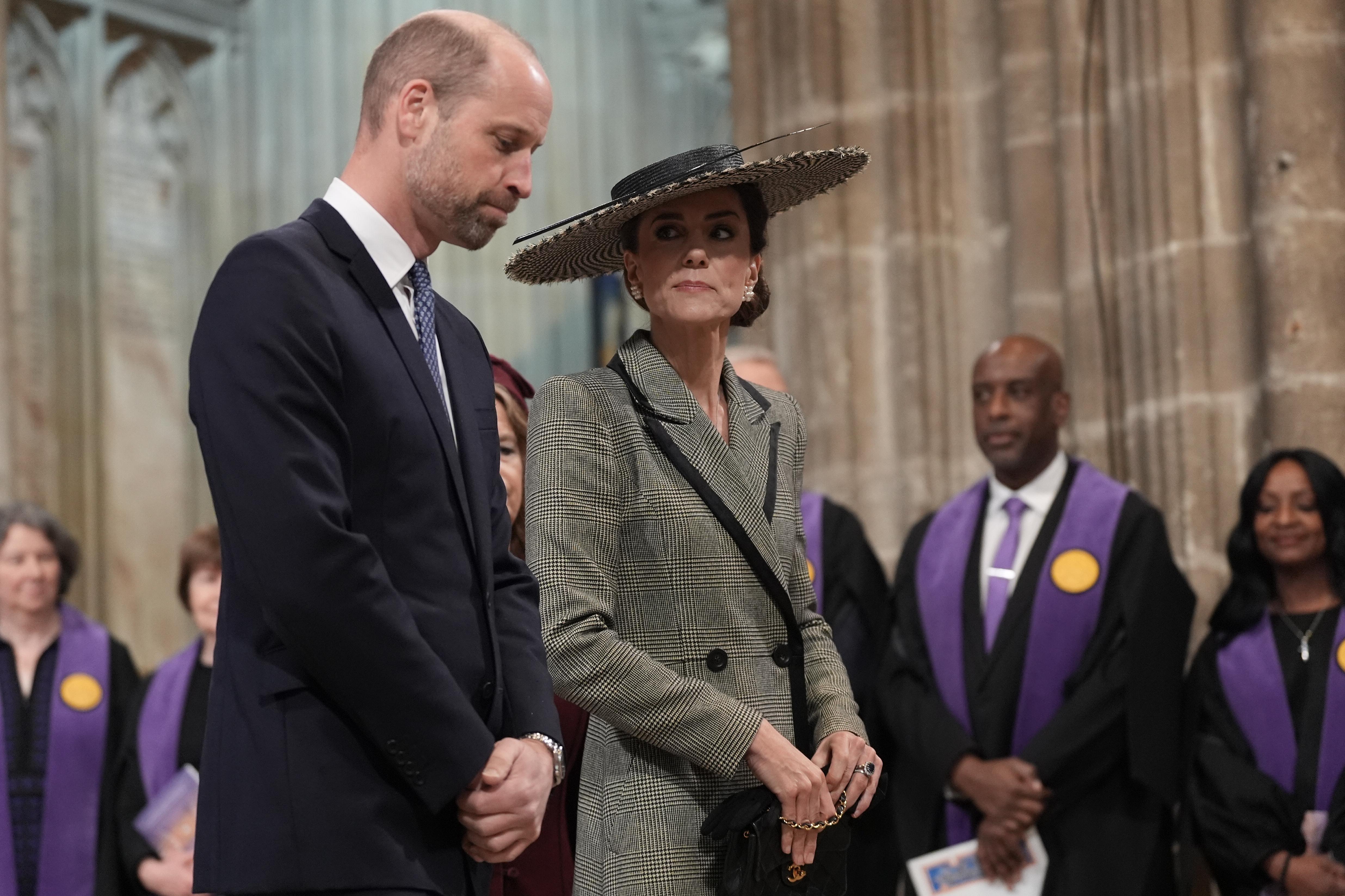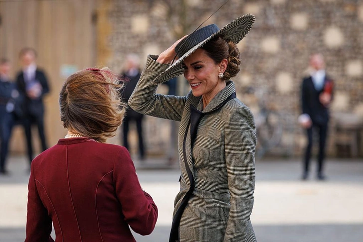 Церемония проходила в Кентерберийском соборе в Кентербери, куда принц и принцесса Уэльские прибыли вместо короля Карла III и королевы Камиллы. Кейт затмила всех: на мероприятии она появилась в двубортном клетчатом пальто британского бренда Suzannah London. Одно из названий этого принта — серо-черно-белой клетки — «принц Уэльский», и члены королевской семьи часто появляются в вещах этого цвета.