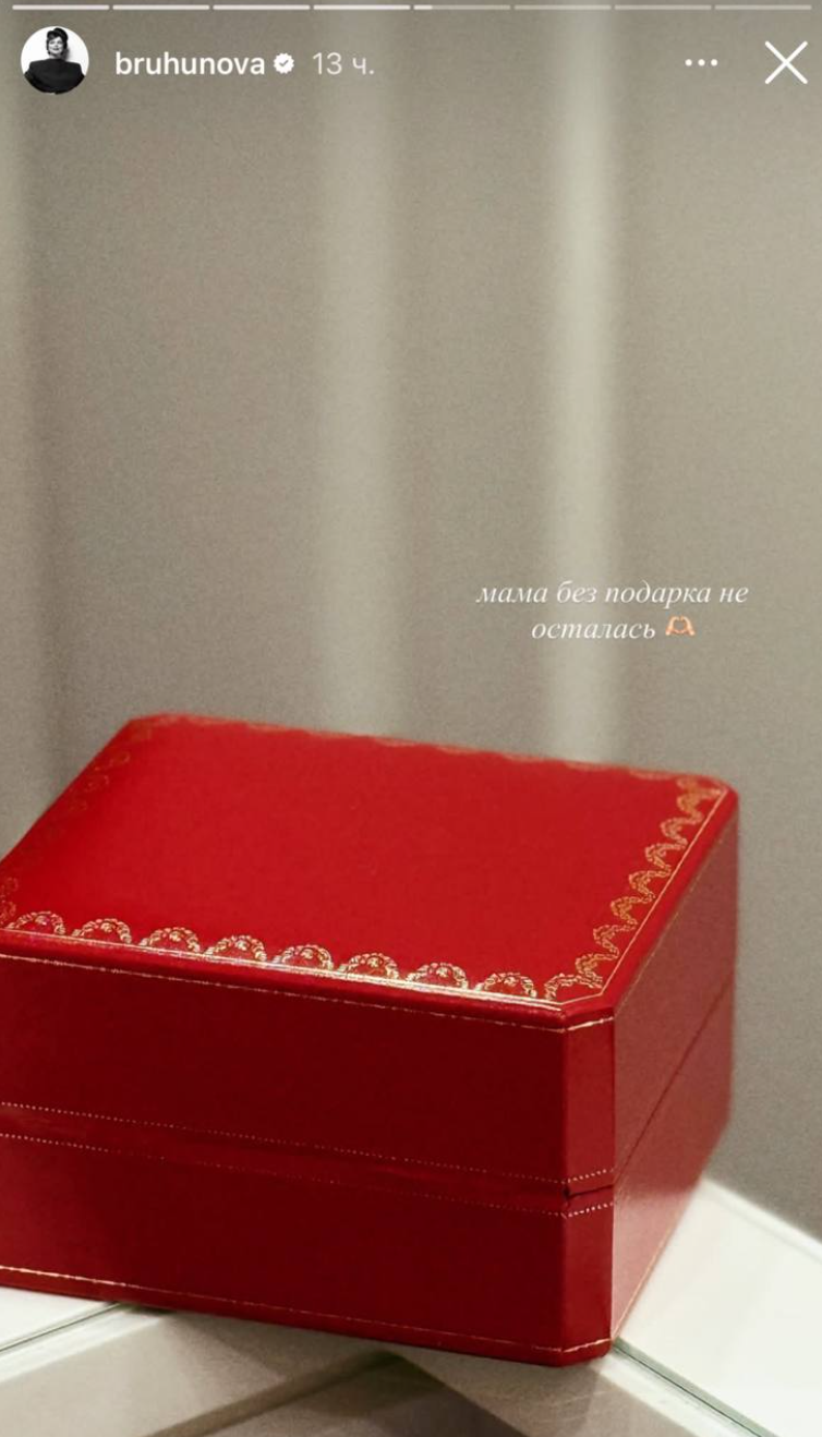 Сама Татьяна без подарка тоже не осталась. Заботливый муж, Евгений Ваганович, преподнес матери своих детей украшение Cartier. Правда что конкретно лежало в роскошной красной коробочке Брухунова не показала.