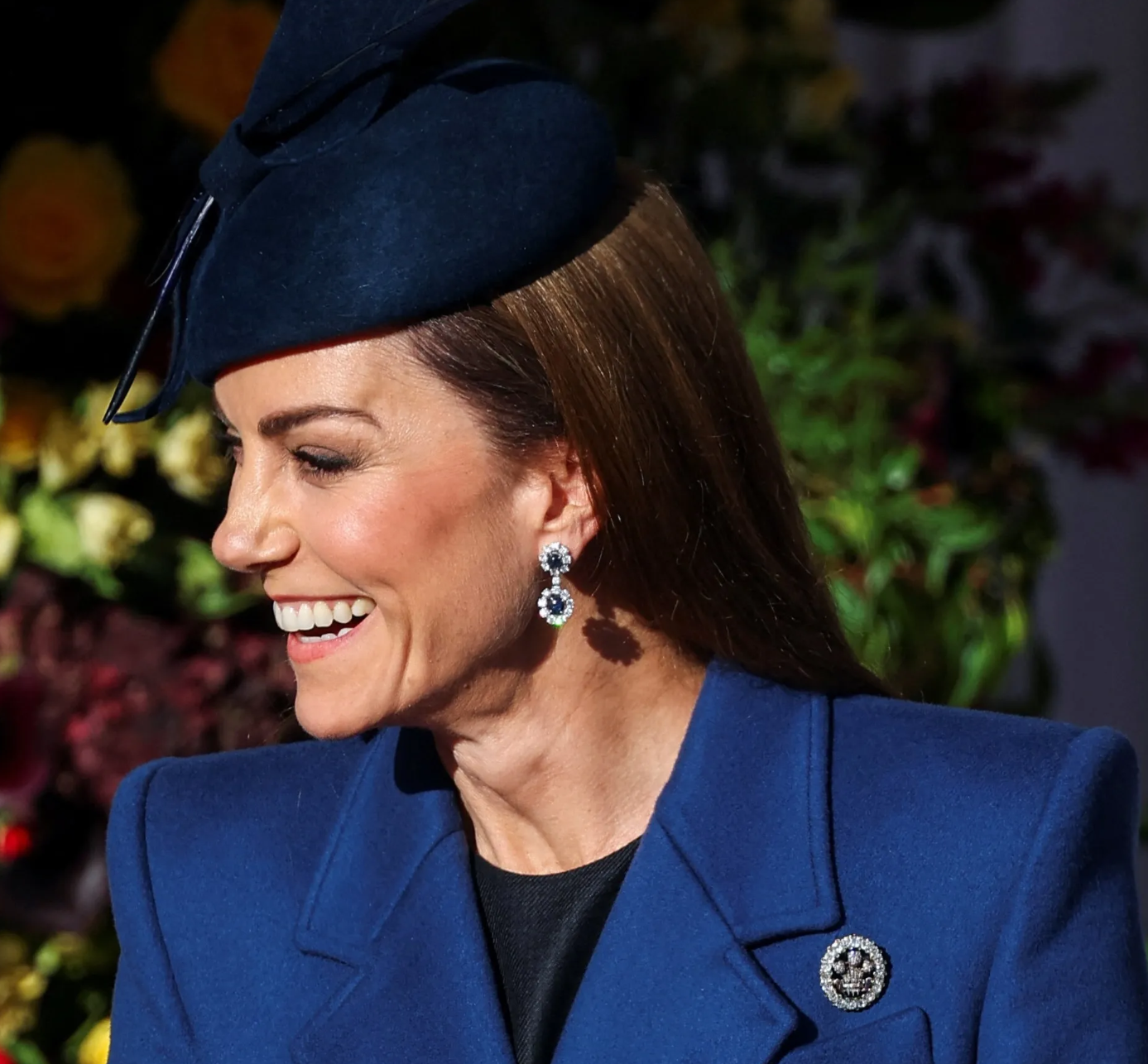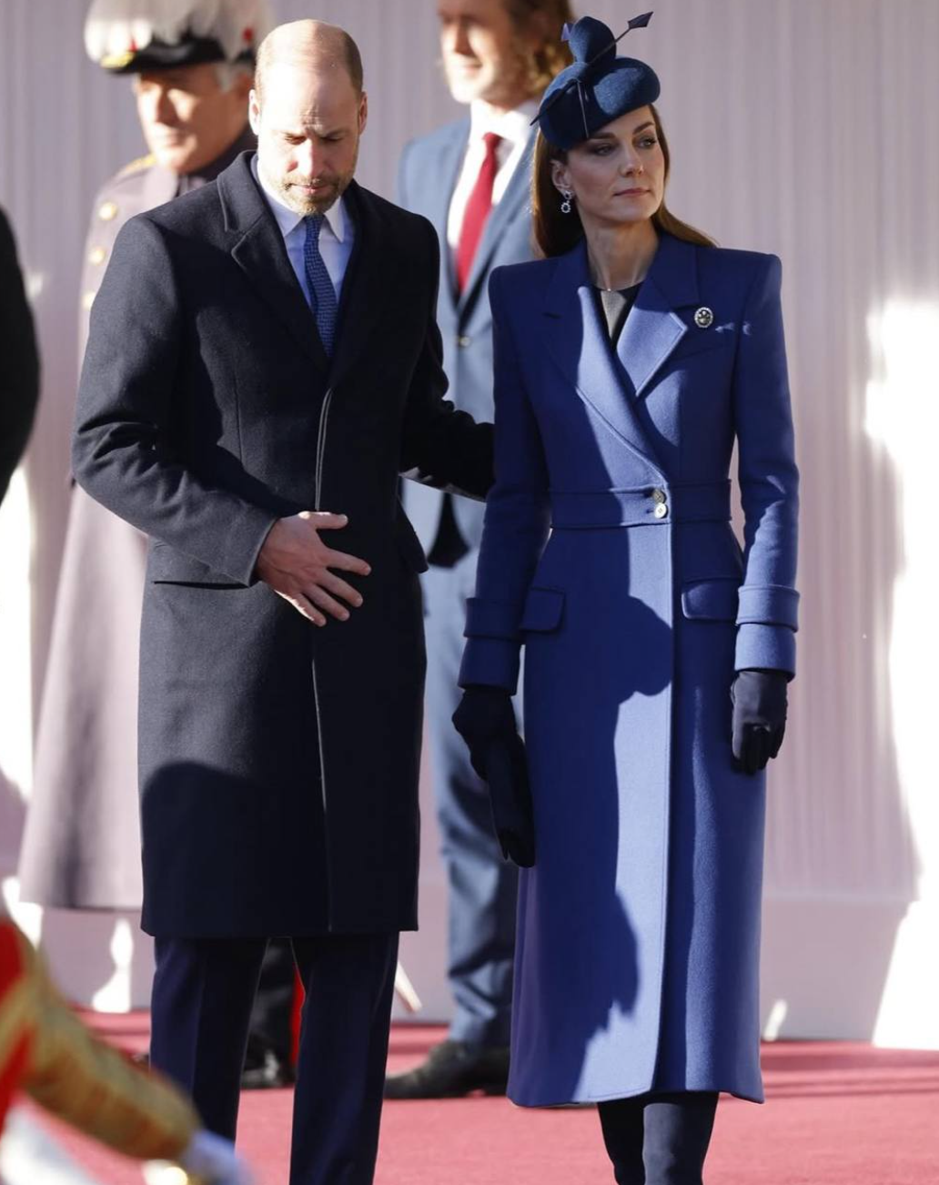 На приеме Кейт Миддлтон появилась в синем пальто Alexander McQueen, серьгах принцессы Дианы и шляпе Juliette Millinery. В этом же образе принцесса посетила рождественскую службу в 2023 году. Это было последнее появление принцессы на публике перед месяцами затишья и объявления о том, что у нее обнаружили рак.